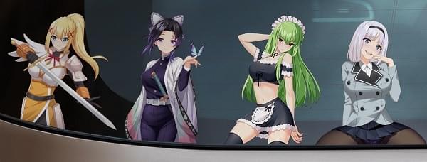 Darkness from Konosuba, Shinobu Kocho from Demon Slayer, C.C. from Code Geass and Anna Nishikinomiya from Shimoneta. Scroll down if you need help to know who is who.